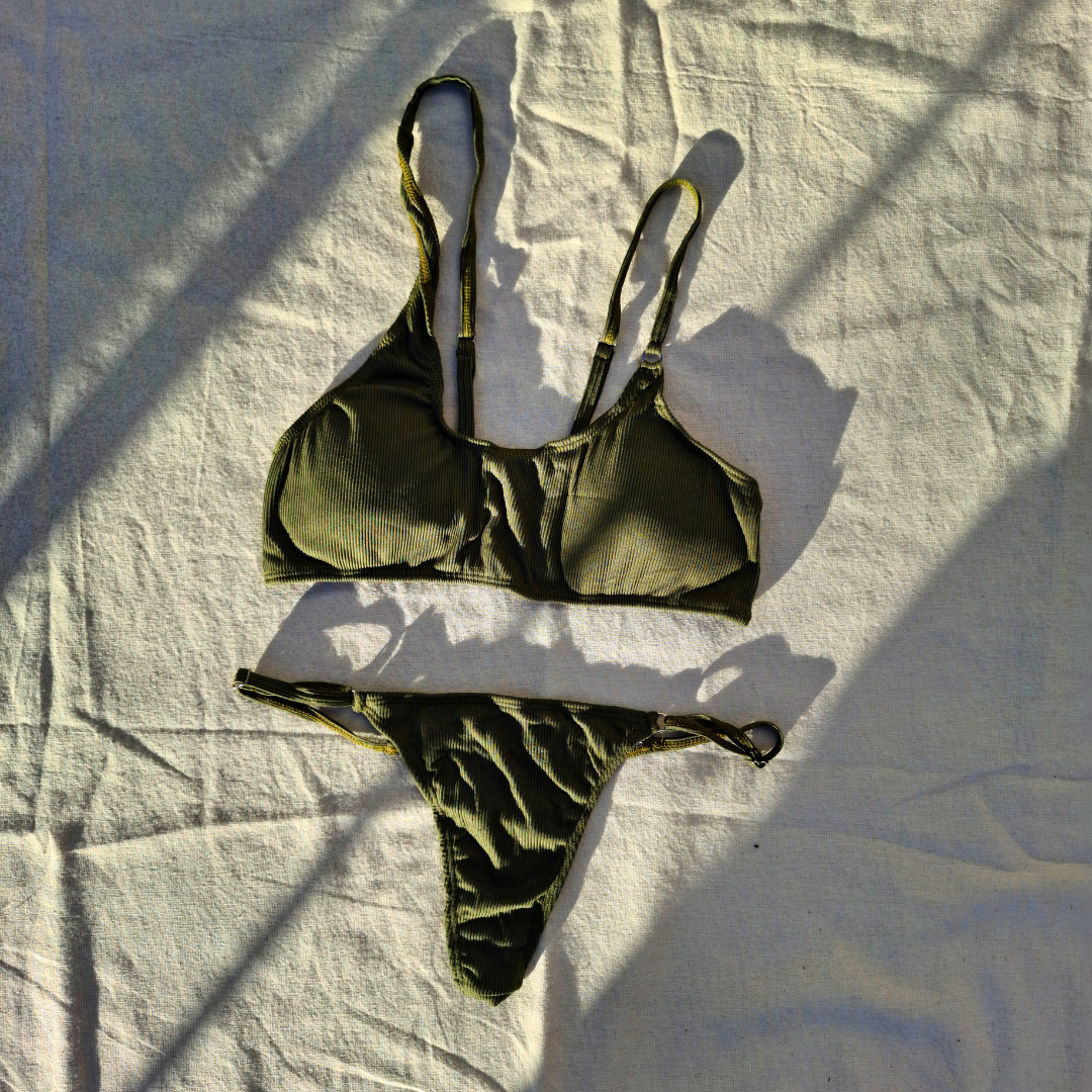 La bombacha es de corte tanga y viene con sus forros internos, ofreciendo la cobertura y seguridad que necesitas. Disponible en talles del 1 al 4, esta bikini es ideal para cualquier tipo de cuerpo.