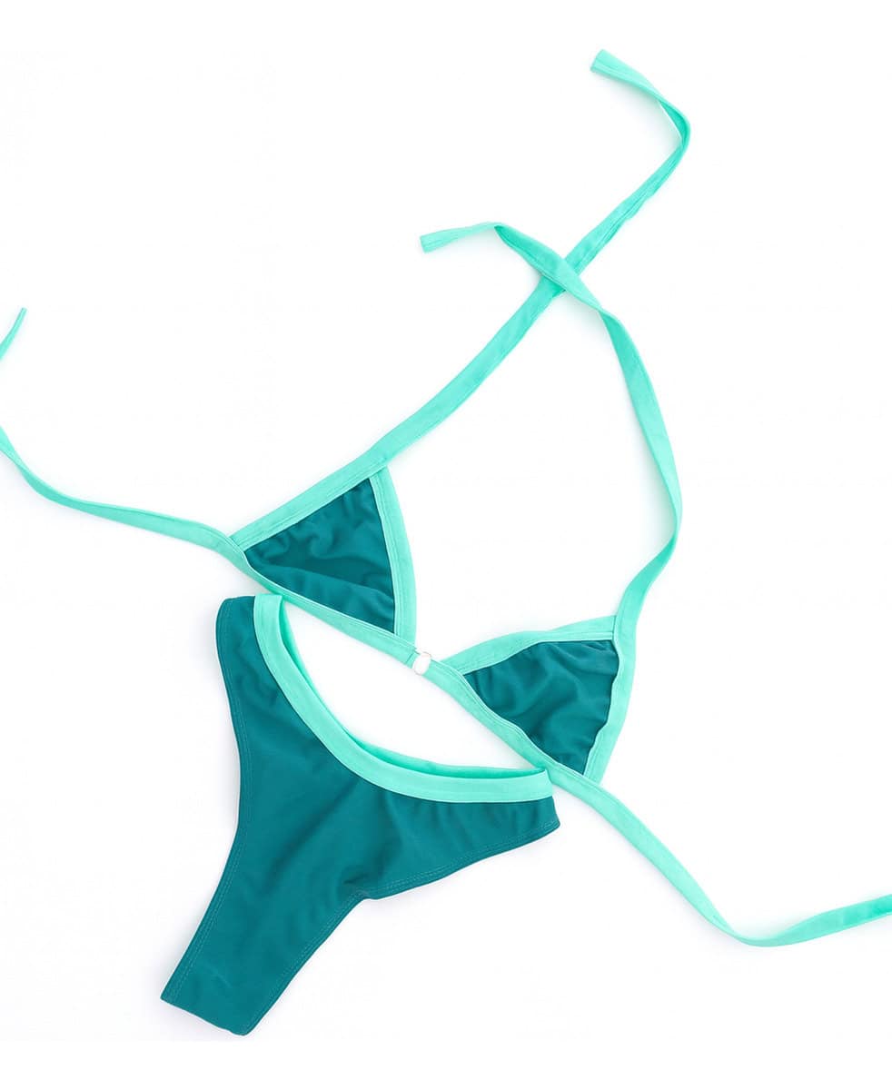 Descubre el bikini Santorini de PRAGGA, un diseño que captura la esencia del verano con su corte ajustable y a la moda. Con una parte superior en forma de triángulo que realza el busto, y una parte inferior tipo tanga que acentúa las curvas, es la elección perfecta para disfrutar del sol y la playa con confianza.