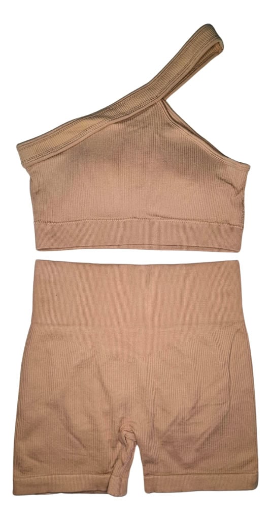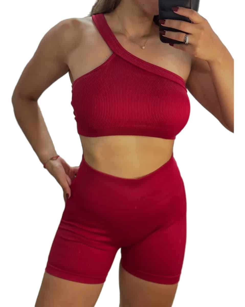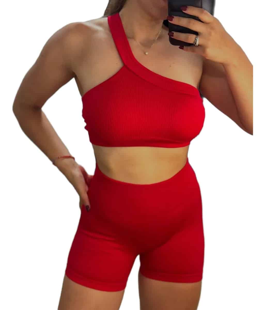 Entrená con estilo y comodidad con este conjunto deportivo confeccionado en tela suave, elástica y de alta calidad. Su diseño de un solo hombro aporta un toque moderno y distintivo, mientras que el short de tiro alto se ajusta perfectamente al cuerpo, realzando la figura y brindando libertad de movimiento. Ideal para entrenamientos, yoga, running o para usar en el día a día con un look sporty chic.