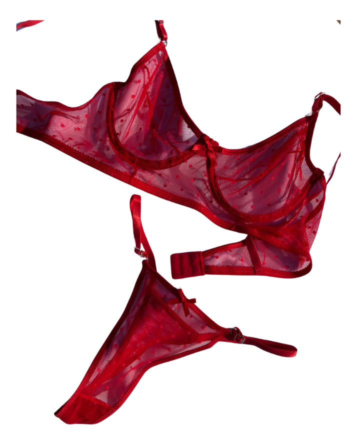 El material de alta calidad proporciona una sensación suave al tacto, mientras que el diseño translúcido añade un toque de misterio y sofisticación. Ideal para ocasiones especiales o para sentirte fabulosa en tu día a día, este conjunto es una elección perfecta para quienes desean expresar su feminidad con confianza.