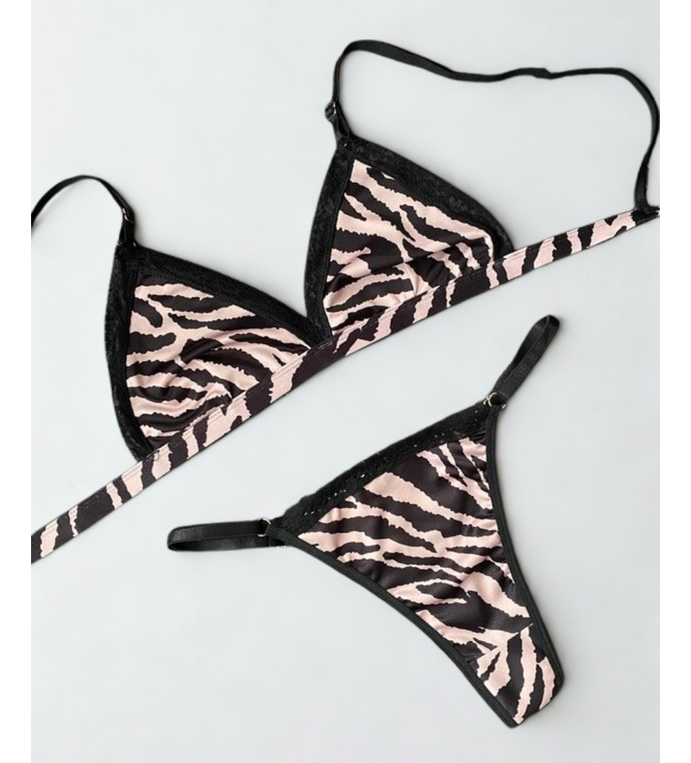 Delicado, fresco y con un toque romántico. Este conjunto de lencería con estampa animal print en tonos suaves combina comodidad y estilo en una prenda perfecta para todos los días. Su diseño liviano y femenino realza la silueta con un ajuste suave que se adapta al cuerpo. Ideal para sentirte cómoda y segura sin perder elegancia.