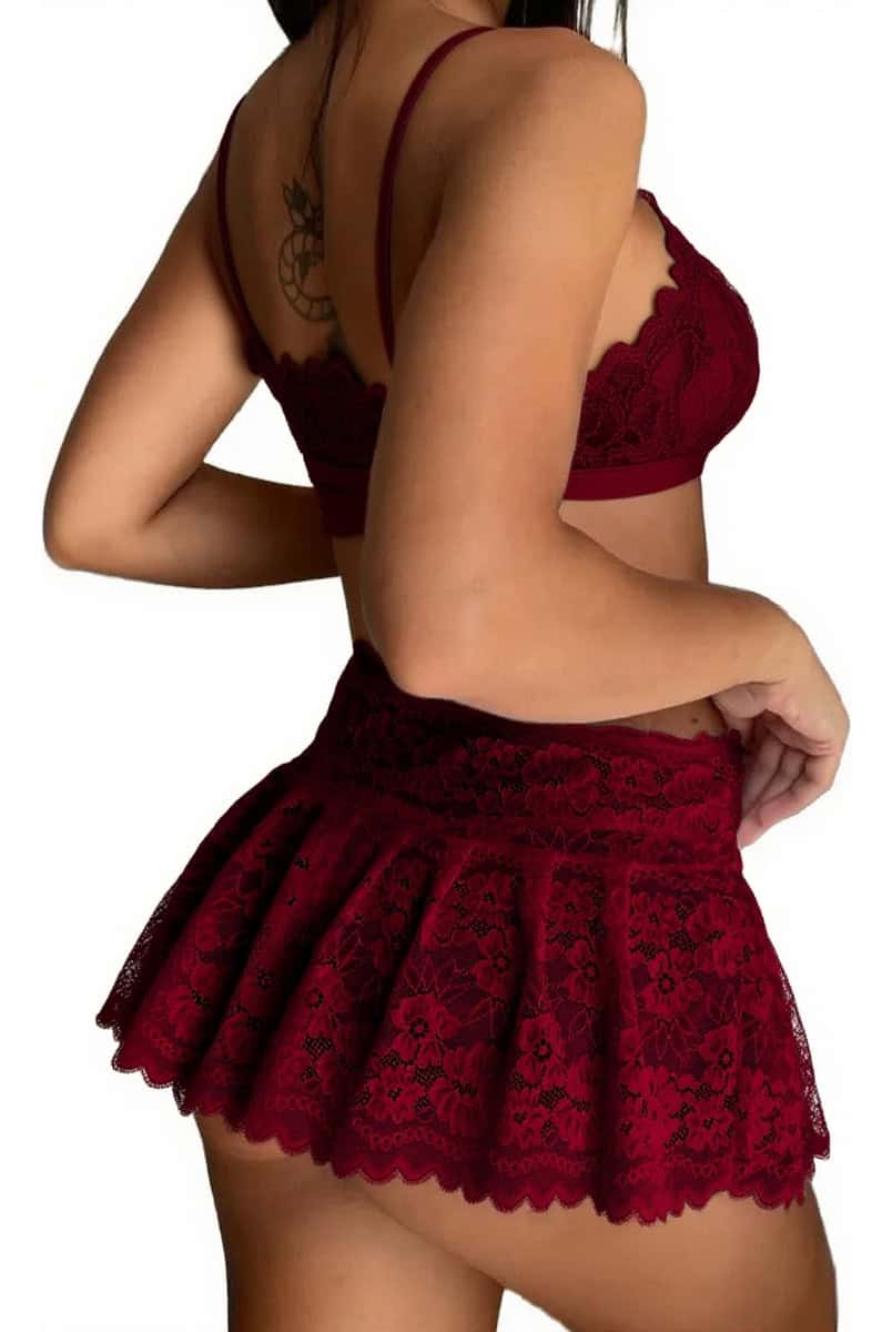 El modelo SETENCAJE incluye tres piezas: un corpiño que acentúa el busto, una tanga que añade un toque atrevido y una pollera que complementa el conjunto de manera perfecta. La composición en encaje no solo es visualmente atractiva, sino que también ofrece una sensación suave al tacto, ideal para cualquier ocasión especial.