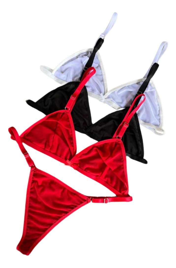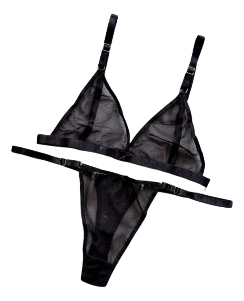 Conjunto Lenceria Corpiño Tanga Micro Tul Regulable 2 Piezas