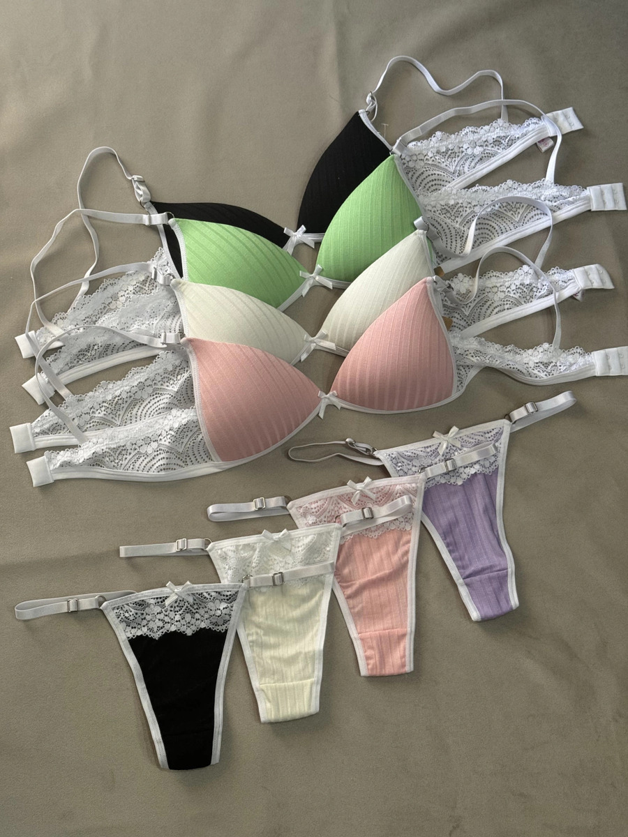 Conjunto Bralette Encaje Cola Less Regulable Sexy Tanga – Rojo