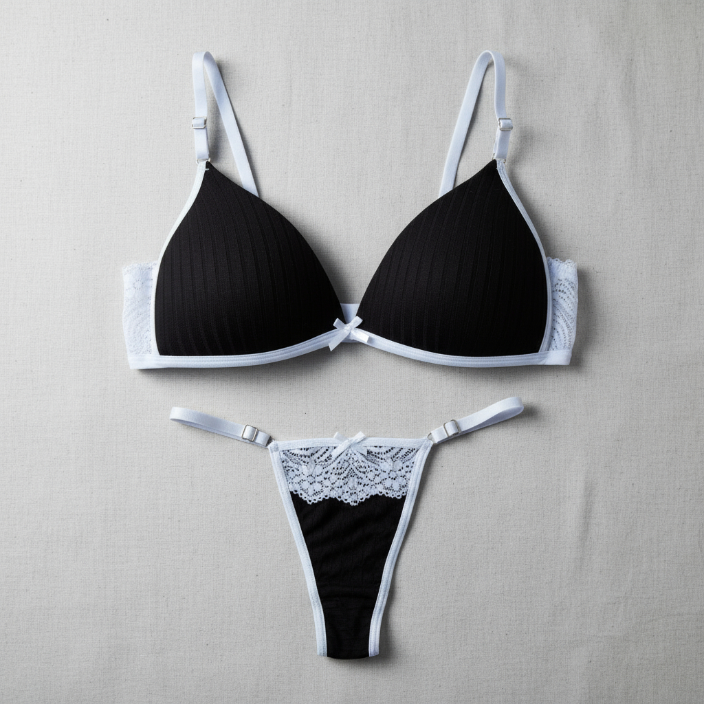 Conjunto Lencería Sexy Encaje Milán – Tipo Corset Y Tanga – Negro