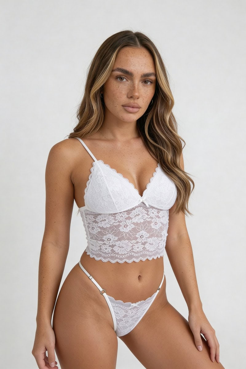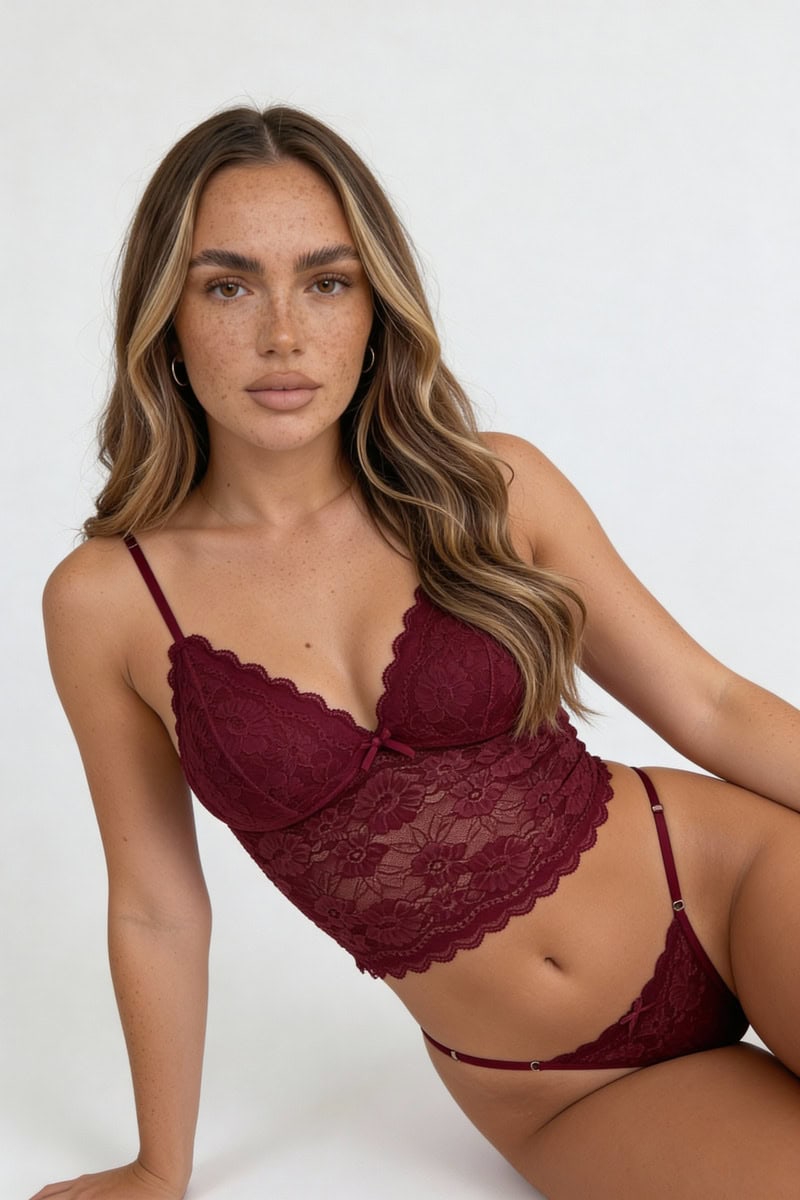 ¡Sumá sensualidad y delicadeza a tu colección con este conjunto premium! Este diseño combina la elegancia del encaje floral con un corte tipo corset que estiliza la figura, ideal tanto para una ocasión especial como para usar debajo de un blazer y crear un look nocturno increíble.