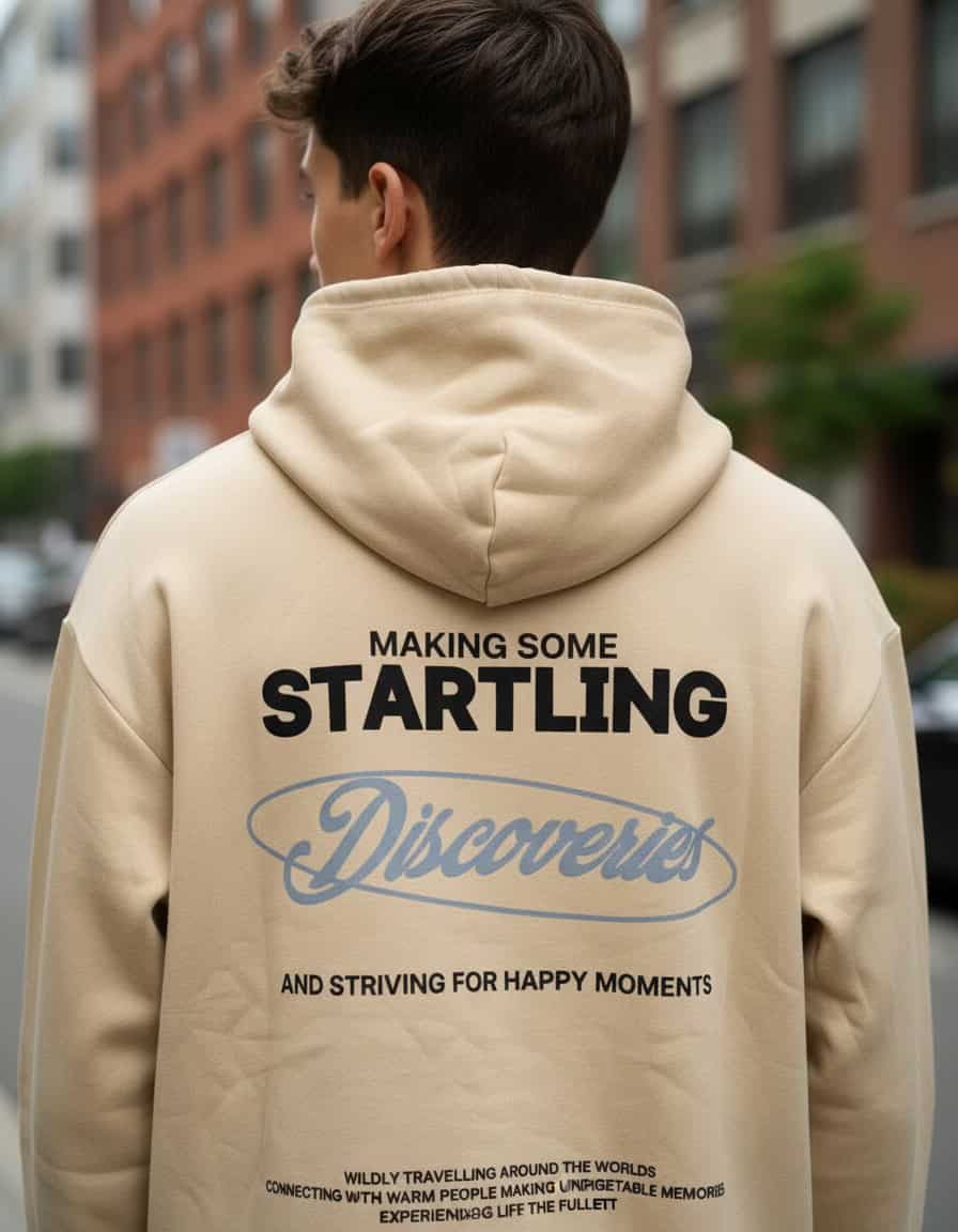 Buzo unisex de algodón frisado con capucha, ideal para un look urbano y moderno. Tiene un estampado grande en la espalda, de alta definición y resistente a los lavados. Es suave, abrigado y con un calce relajado, perfecto para todos los días.